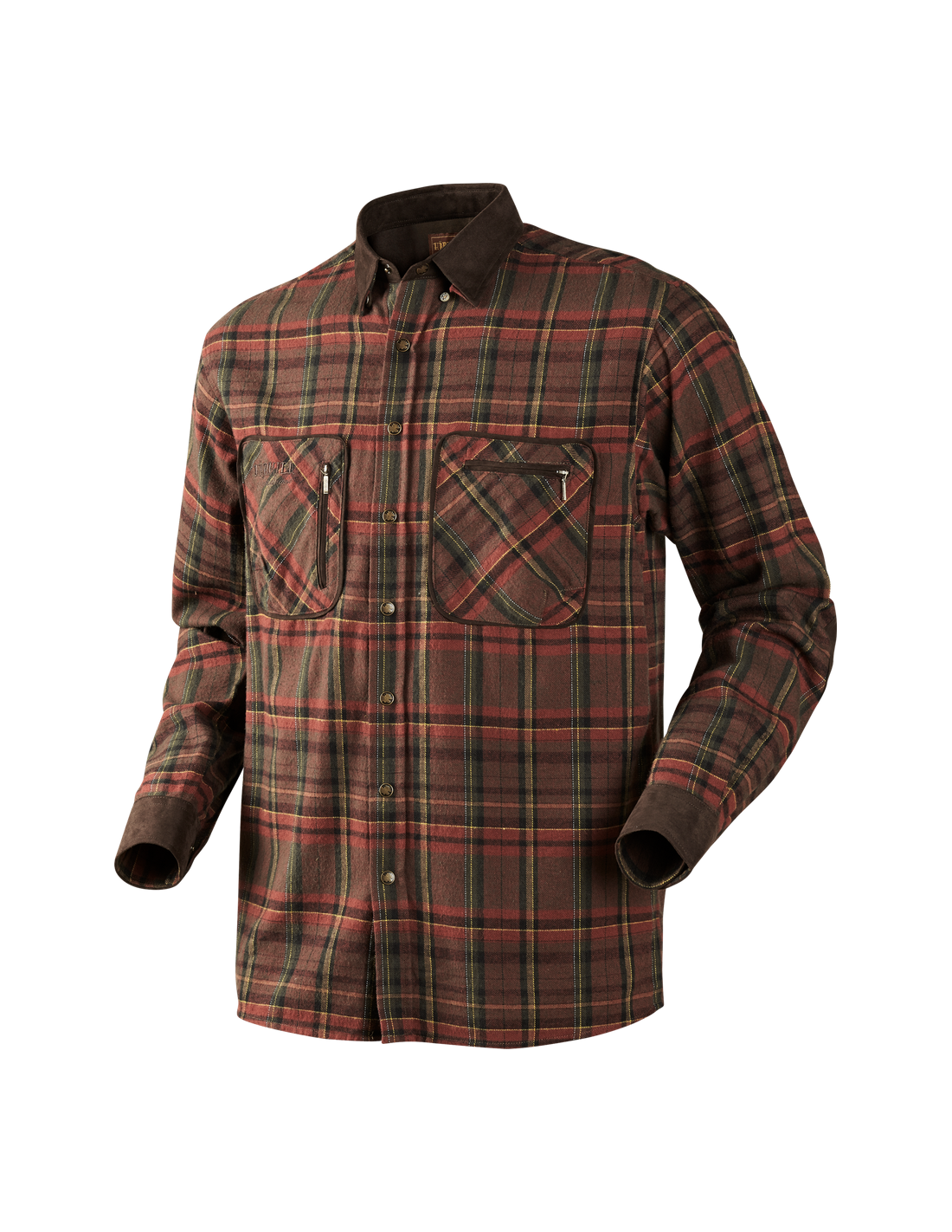 Pajalaskjortan är en finstämd blandning av komfort och praktiska egenskaper, för både jakt och friluftsliv. Tillverkad av borstad flanell som andas och har klassiska jaktrutor, veckad rygg för optimal rörlighet, förstärkningar vid krage, armbågar och manschetter, samt strategiskt placerade fickor. Den generösa passformen, de dolda kragknapparna och de justerbara manschetterna symboliserar genomtänkt design och komfort.