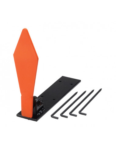Skjutmål för 22LR som är fjädrande, vid träff faller den bakåt men går upp direkt på grund av fjäderbelastningen.