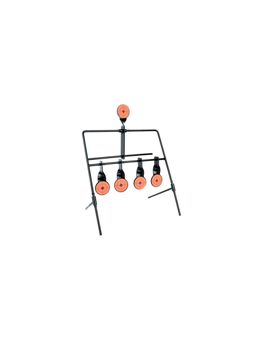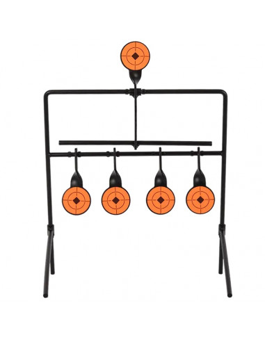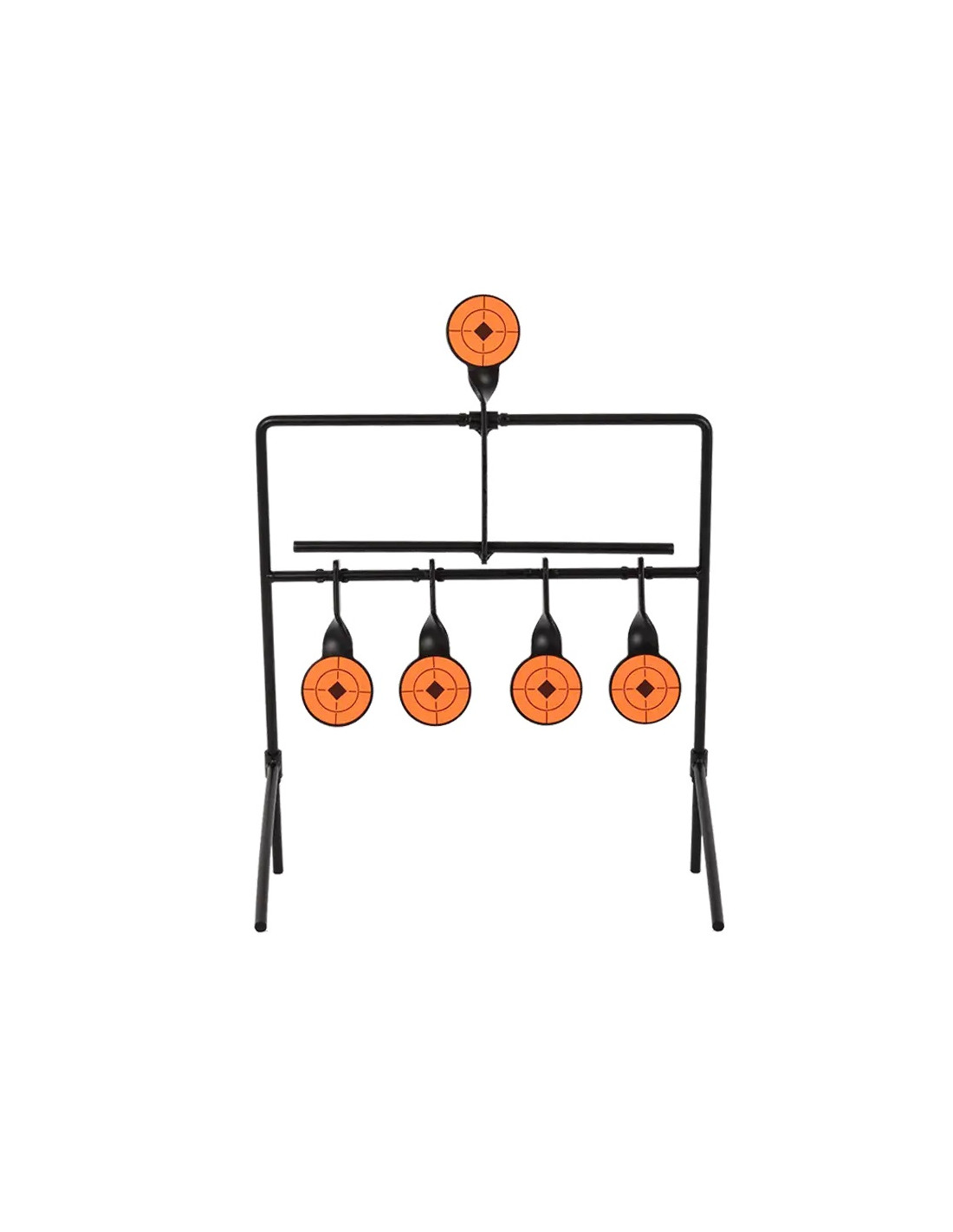 Självmarkerande 22LR Mål som gör träningsskyttet ännu roligare. När de första 4 målen träffats, som då snurrat upp mot en regel, ska den övre femte cirkeln, träffas, vilket då får de övriga 4 att ramla/ snurra ner igen. Inga onödiga promenader fram & tillbaka till målet mer med denna snurran, bara till att ladda om & ha förbaskat roligt! Självmarkerande 22LR måltavla har en rejäl och stabil konstruktion av stål