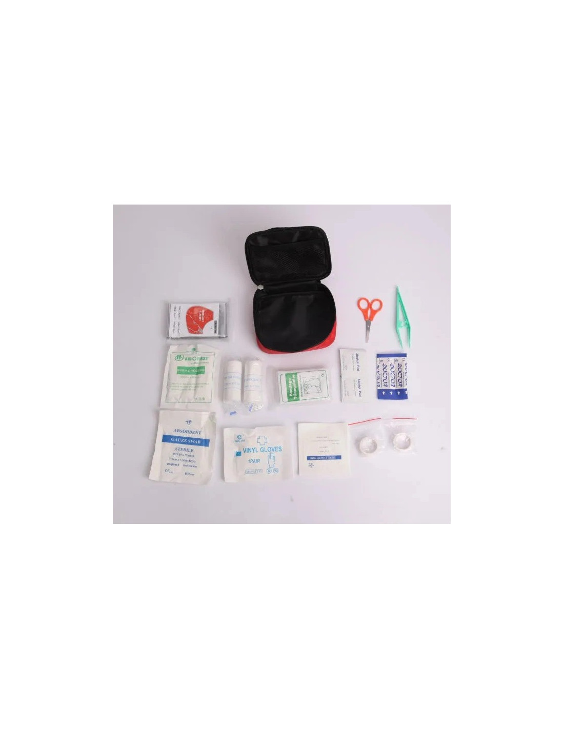 Välutrustad första hjälpen-kudde med texten FÖRSTA HJÄLPEN.