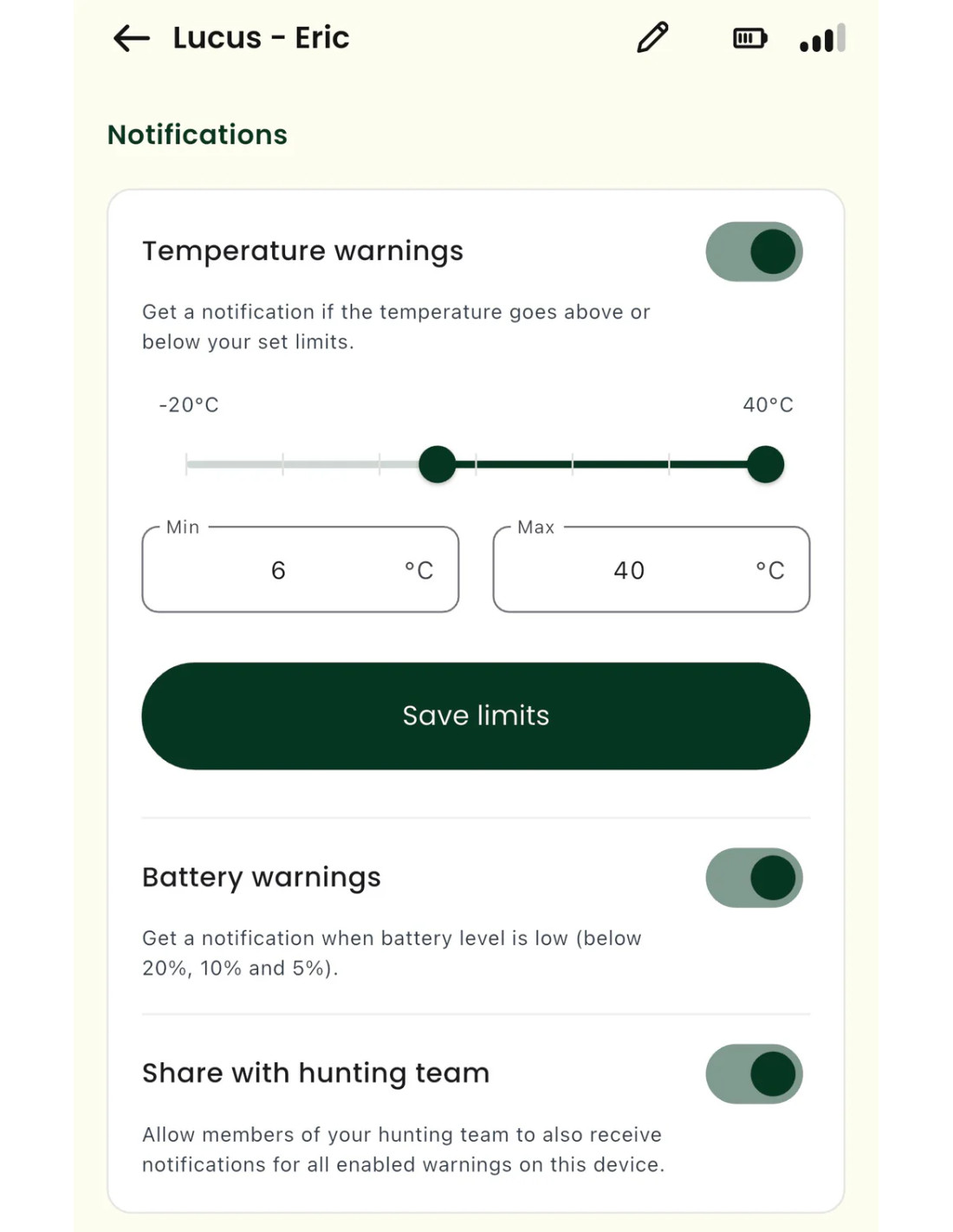 - Notiser: Anpassningsbara temperaturgränser i appen