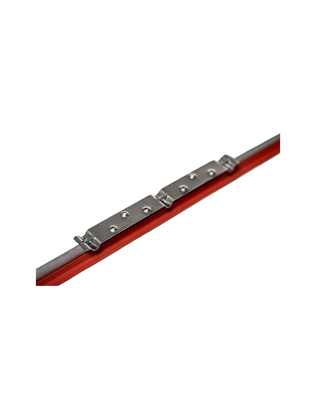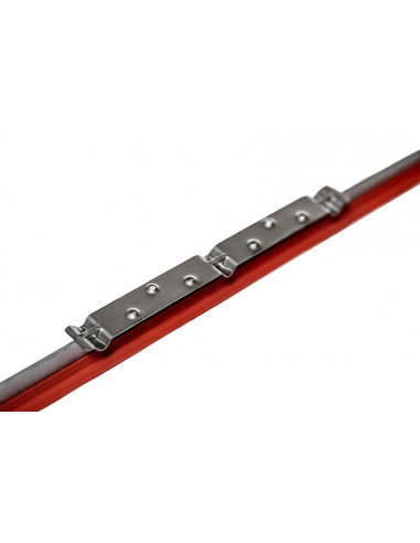 Tåligt och stabilt fotstöd i rostfri plåt som du enkelt trycker fast på medarna.