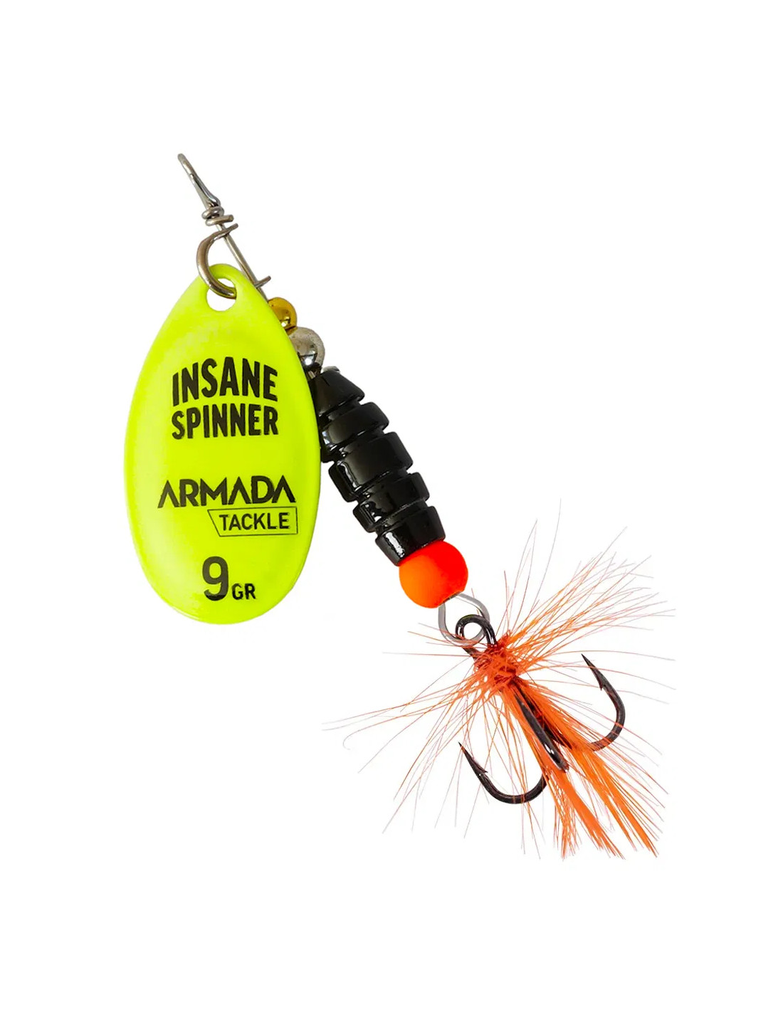 En spinnare som är riktigt långkastande tack vare sin kompakta kropp. Skeden spinner redan i låga farter och skapar ordentligt med ljud och vibrationer i vattnet. Tofskroken är pricken över i:et och något som särskilt Abborren är mycket förtjust i. Finns i flera beprövade färgkombinationer.