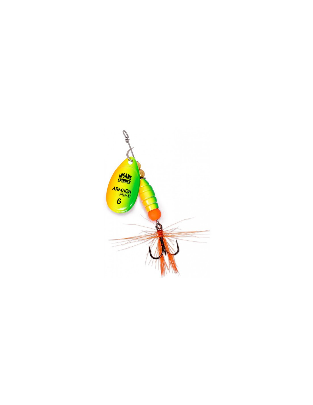 En spinnare som är riktigt långkastande tack vare sin kompakta kropp. Skeden spinner redan i låga farter och skapar ordentligt med ljud och vibrationer i vattnet. Tofskroken är pricken över i:et och något som särskilt Abborren är mycket förtjust i. Finns i flera beprövade färgkombinationer.