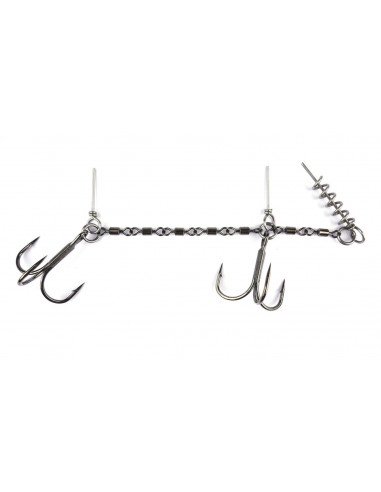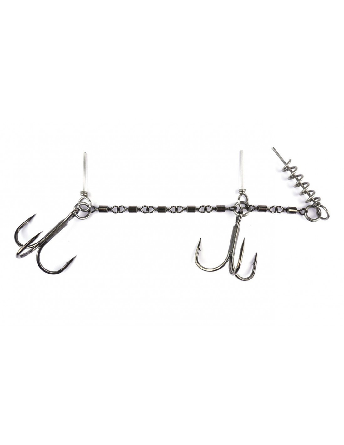 Komplett krokrigg för tackling av större gummibeten. Tacklet bygger på sammanlänkade lekanden, fjäderringar och trekrok. Detta ger en extrem styrka och livslängd, shallowskruv och stingerspikes ingår!