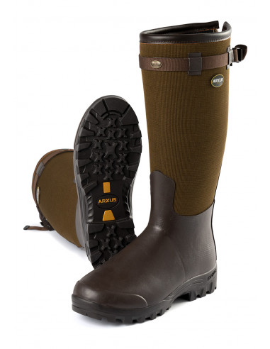 Stöveln är utrustad med en RIRI dragkedja utmed halva skaftets baksida. Detta ger stora möjligheter att anpassa vadmåttet efter eget behov upp till 46 cm.Läderkanten längst upp på skaftet och spännremmen runt hela skaftet gör att stöveln sitter stabilt trots det mjuka textilskaftet. Arxus X-Grip sula är uppbyggd av sex olika tekniska lager. Detta ger en marknadsledande komfort med smidighet, stabilitet och grepp som viktiga fördelar.