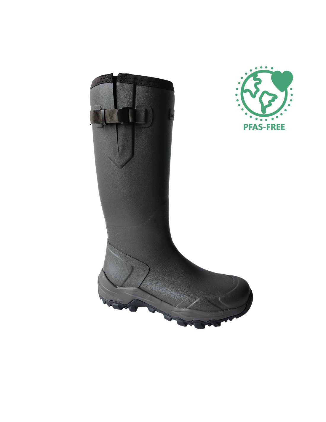 Avancerad stövel för vår, sommar och höst i högkvalitativt naturgummi. Stötdämpande sula med mycket bra grepp, förstärkt hälkappa och mjuka, följsamma skaft. Fodrad med snabbtorkande nylon. Låg vikt, bred läst och utmärkt passform. Justerbart vadmått med spänne.