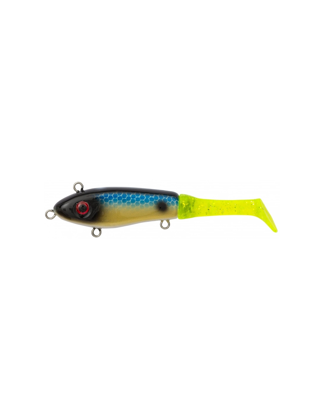 Underbara McHybrid i mindre storlek kommer bli ditt supervapen i jakten på abborre och andra rovfiskar som gärna väljer ett aningen mindre bete. Om du fäster linan i övre öglan så simmar den djupare, med en kvickare rörelse. Fäster du istället i nedre öglan får du ett något sävligare rörelseschema och ett mer grundgående bete. Kommer med både en paddel och en vanlig tail.