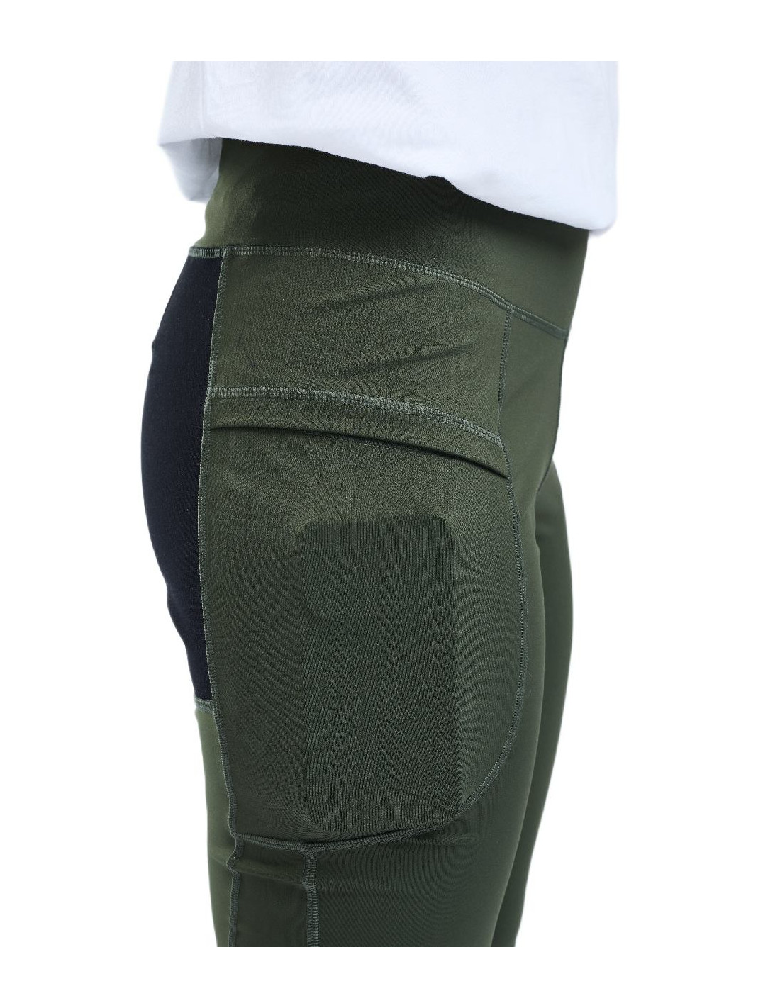 Stretchiga tights i lätt vikt med förstärkta knän och bak som gör dem tåliga och anpassade för utomhusanvändning. Tightsen har en ficka på varje ben, den högra är dessutom försedd med dragkedja för säker förvaring. Midjan är elastisk och har ett justerbart band som kan spännas åt för en tightare passform. De här tightsen har många användningsområden och passar lika bra på träningspasset som på vandringen där du vill vara lätt och bekvämt klädd men ändå skyddad mot terrängen.