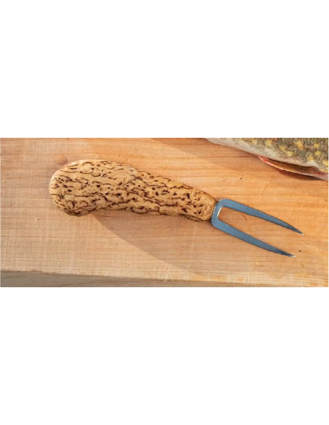 En robust fiskspik med handtag av masurbjörk är ett populärt hjälpmedel vid filéing av fisk.