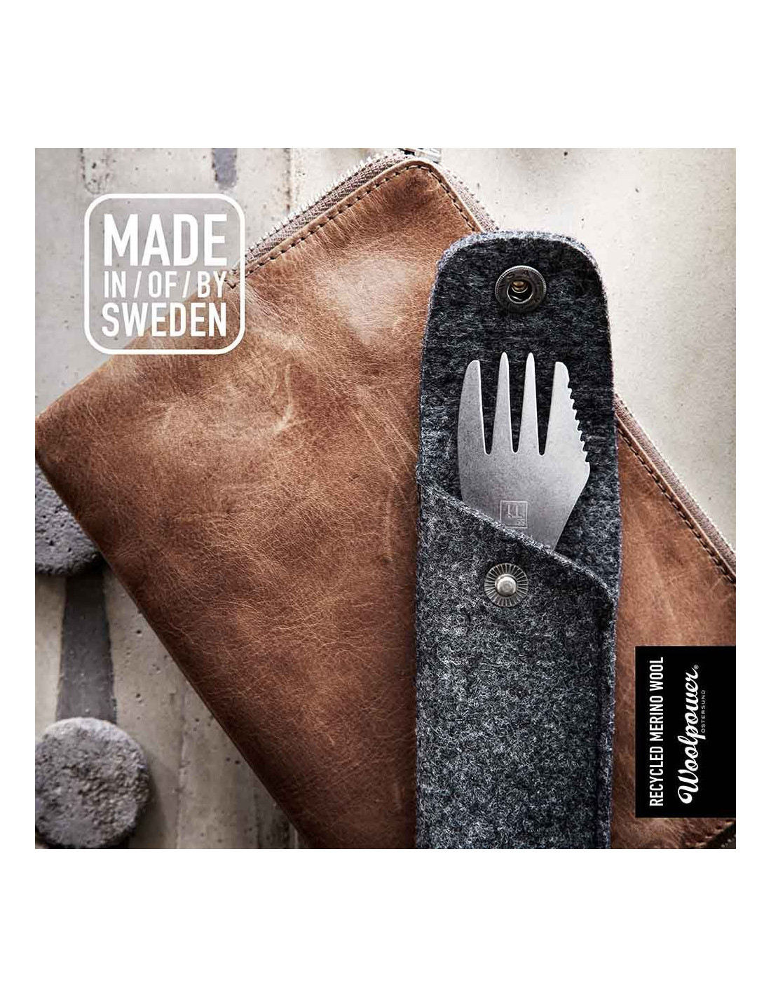 Fodral tillverkad av den återvunna merinoullen från Woolpowers plaggproduktionsavfall. Färgen kan variera beroende på de olika färgerna på kläderna. Min 50% merinoull och max 50% syntet. Merinoullen kommer från Patagonia och är garanterad etisk djurbehandling och 100% mulesingfri.