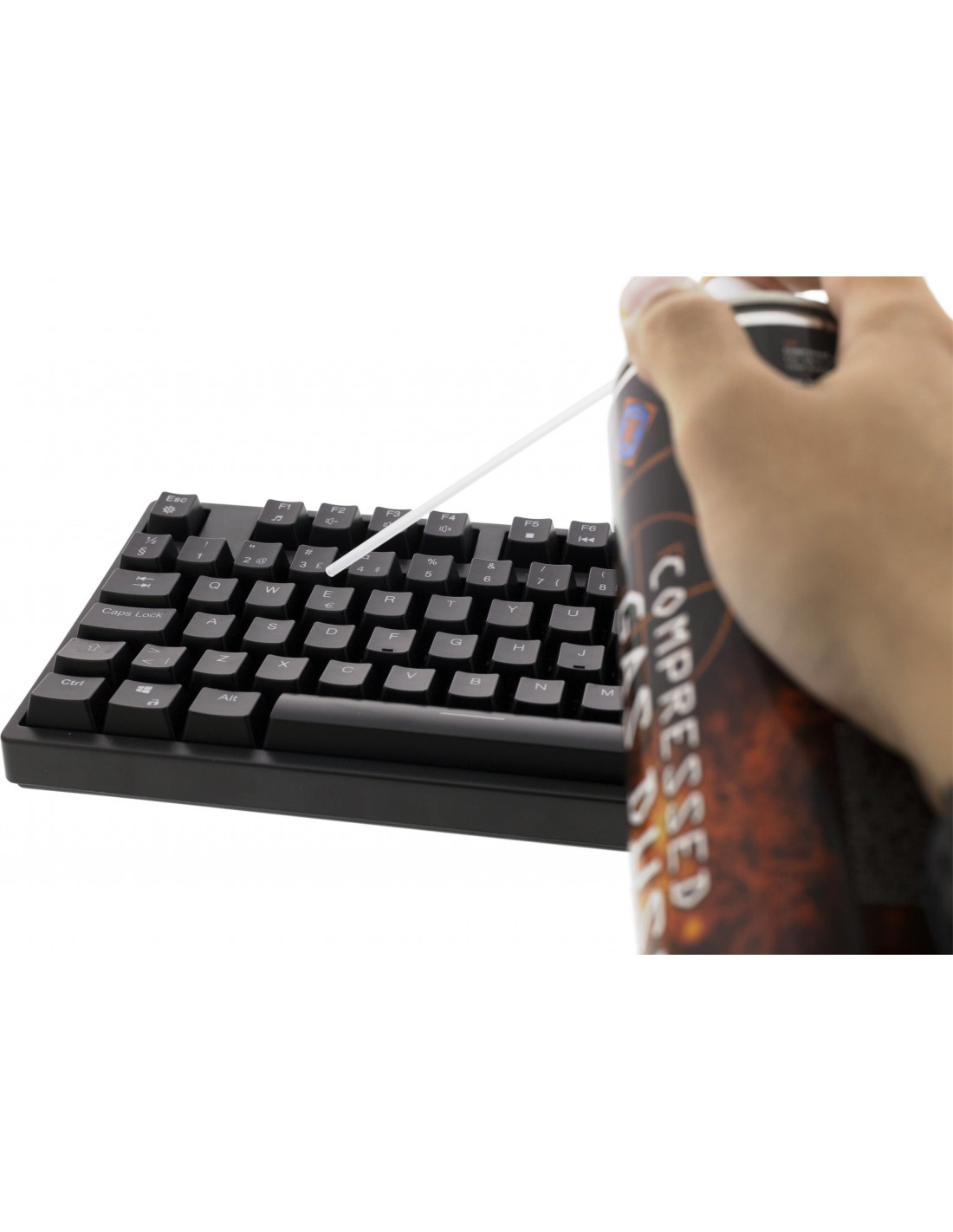 Denna massiva tryckluftsburk kan användas för att rengöra till exempel tangentbord, datorkomponenter och annan elektronisk utrustning. Det flexibla munstycket fäster enkelt på burken och gör det smidigare att rengöra i trånga utrymmen.