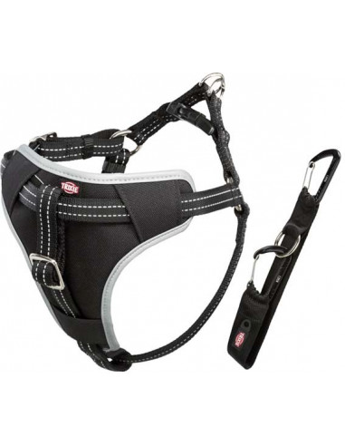 Selen kan öven användas som promenadsele och har reflexdetaljer framtill och på banden runt ryggen.