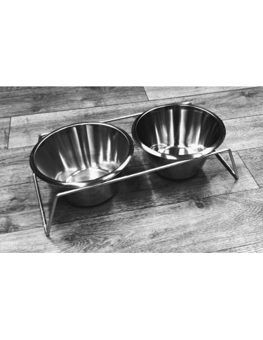 Mat- & Vattenskålshållare inkl rostfria skålar 3 liter för placering på golv/underlag.