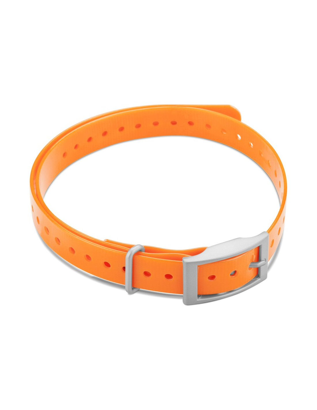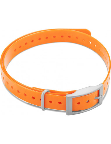 Garmins halsband med överdrag i polyuretan är tåliga och vattentäta, och precis likadana som originalhalsbandet som medföljde ditt T5 Mini-halsband. 3/4 tum (1,9 cm) brett och är 68 cm långt som har ett nickelpläterat fyrkantsspänne, halsbandshållare och har hålmellanrum som passar de flesta hundar. Den finns i 6 färger: svart, röd, orange, gul, grön och blå (säljs separat).