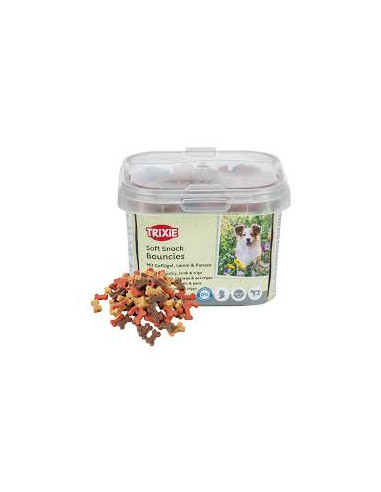 Soft Snack Bouncies är ett perfekt sätt att skämma bort din hund lite extra eller att använda som träningsgodis. Med smak av fågel, lamm och vom.