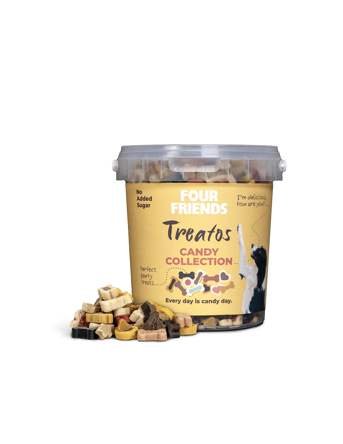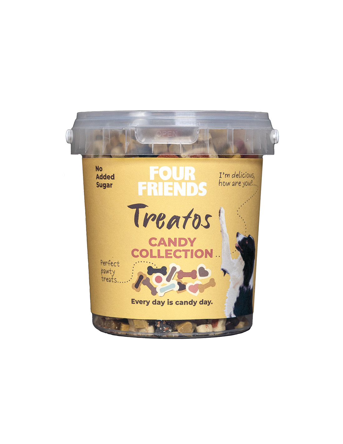 Från FourFriends kommer ett "semimjukt" belöningsgodis i en burk med handtag. Candy Collection innehåller lite gott & blandat av olika varianter på bitar. Måndag, tisdag, onsdag...Alla dagar är godisdagar!