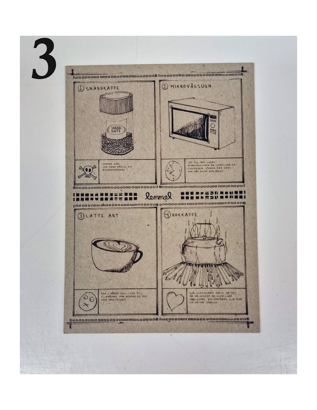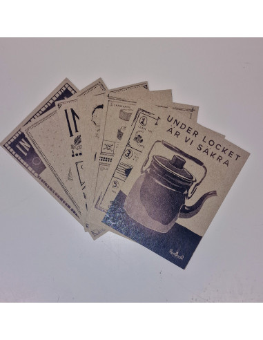 Vykort ifrån Lemmelkaffe med olika motiv.