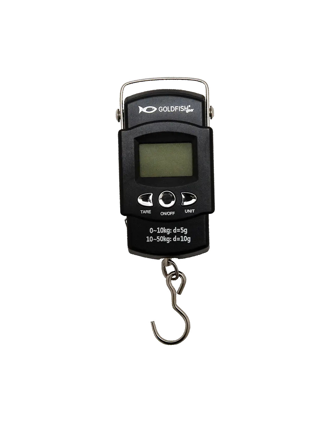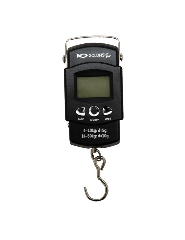Goldfish Digitalvåg väger upp till 50kg. Den väger med 5 grams marginal upp till 10kg och mellan 10 och 50kg med 10 grams marginal. Perfekt när du vill ha möjlighet att väga både mindre och större fiskar.