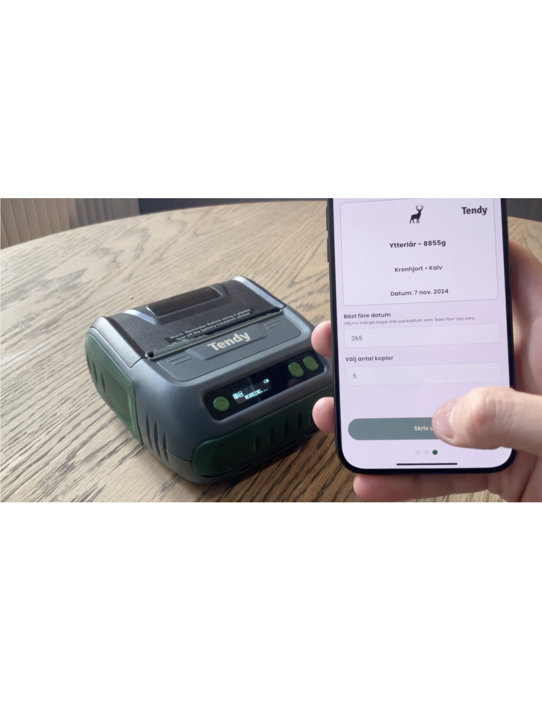 Tendy Scriptor är en kraftfull och portabel etikettskrivare som sömlöst kopplas ihop med Tendy-appen. Med Scriptor kan du smidigt skapa och skriva ut etiketter för dina styckdetaljer direkt från mobilen. All information från din mörning överförs enkelt via Bluetooth och appliceras automatiskt på etiketten, vilket säkerställer att varje detalj följer med produkten.