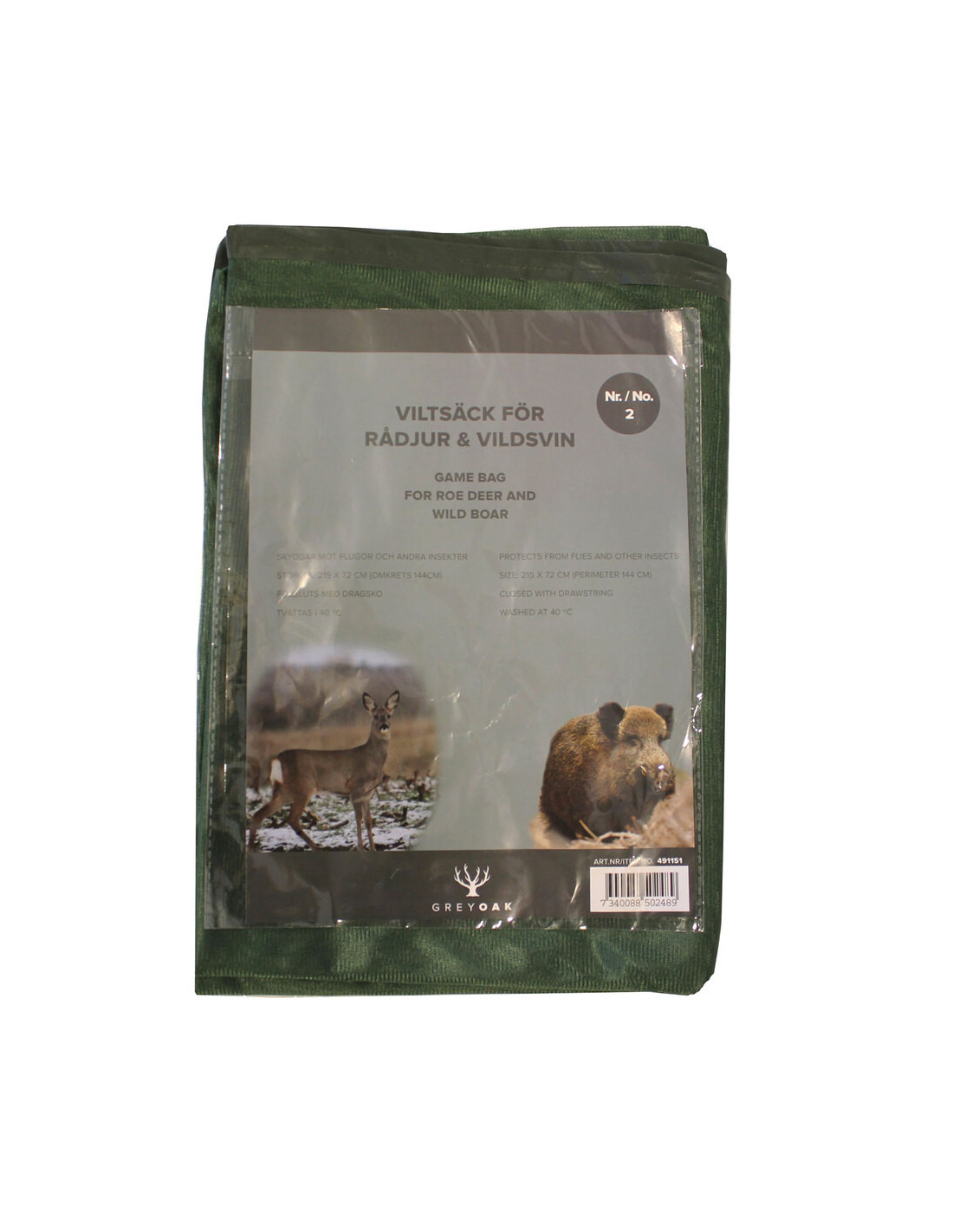 Säcken gör att upphängningen av djurkroppen blir så hygienisk som möjligt, även vid varmt väder. Säcken går att tvätta i 40°C.