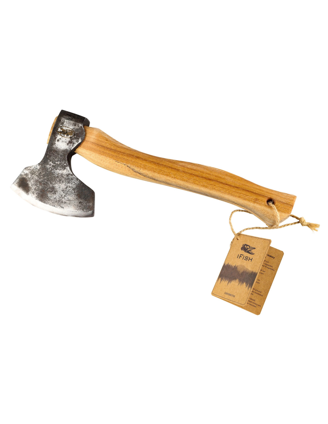 IFISH Carvingyxa är en mångsidig yxa som tack vare sin långa och vassa egg fungerar både som en kniv och en yxa. Tillverkad av härdat 45# kolstål och med ett skaft i oljebehandlad amerikansk hickory, är denna yxa perfekt för både finare träarbeten och tyngre uppgifter. Eggskydd i naturläder ingår.