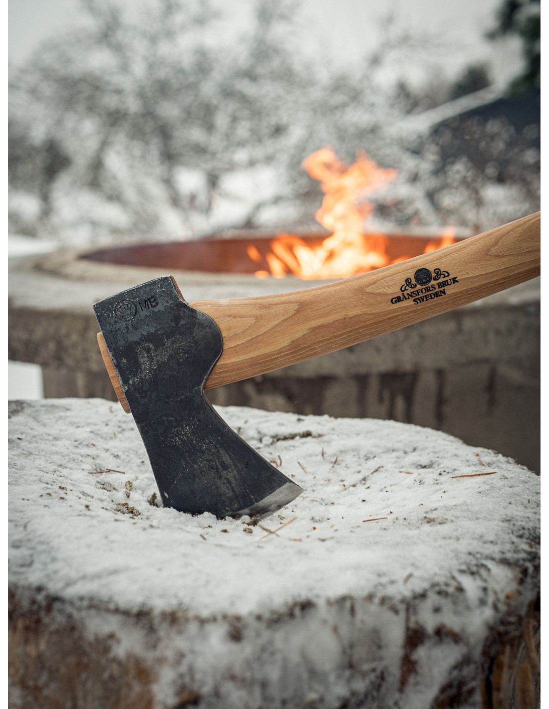 Produktion: Materialet till skaftet kommer som sagt från USA. Övriga delar tillverkas i Sverige. Samtliga produktionssteg för att göra den färdiga yxan utförs slutligen i Gränsfors i norra Hälsingland.