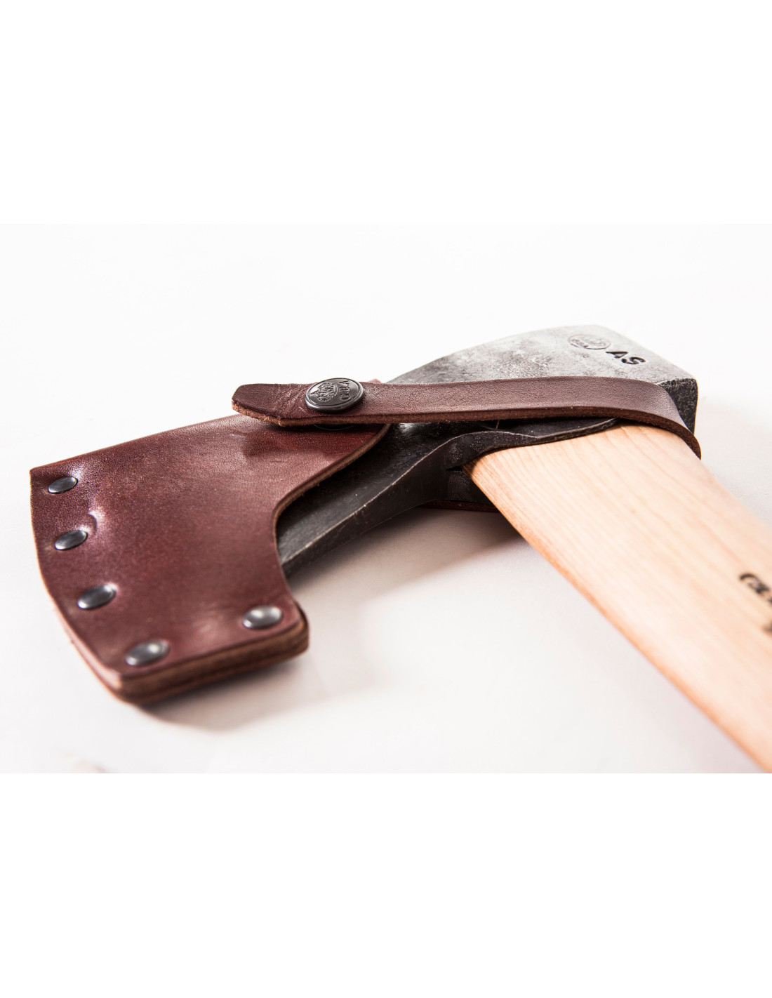 Material: Yxans huvud är tillverkat av ett speciallegerat stål. Ursprunget är 97,2% återvunnet skrot. Skaftet är gjort av amerikansk hickory, behandlat med svensktillverkad linolja. Eggskyddet är tillverkat av vegitabiliskt garvat läder från Tärnsjö.